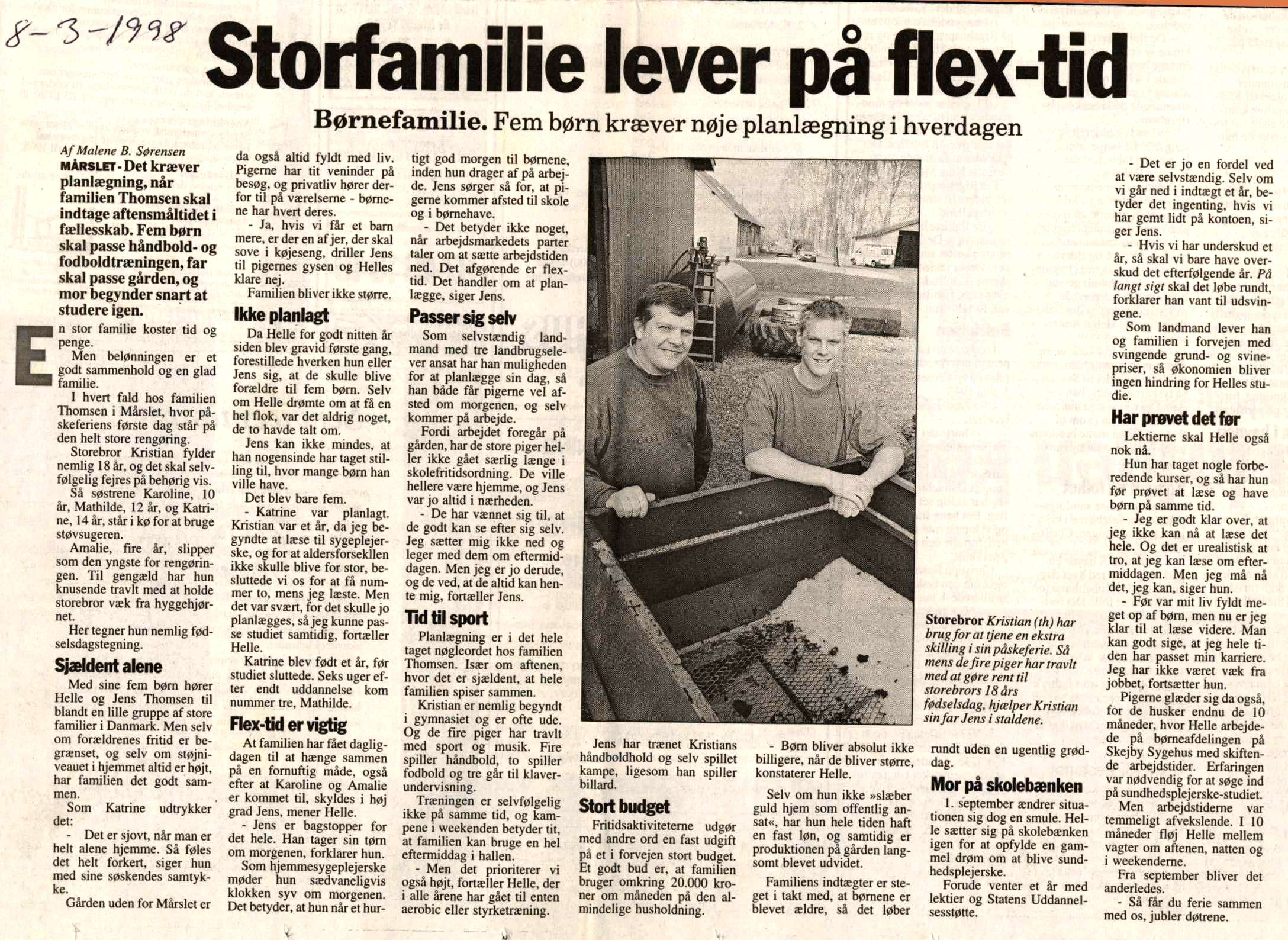 Familien Thomsen. Tranbjerggård. Århus Stiftstidende. 8. marts 1998.
